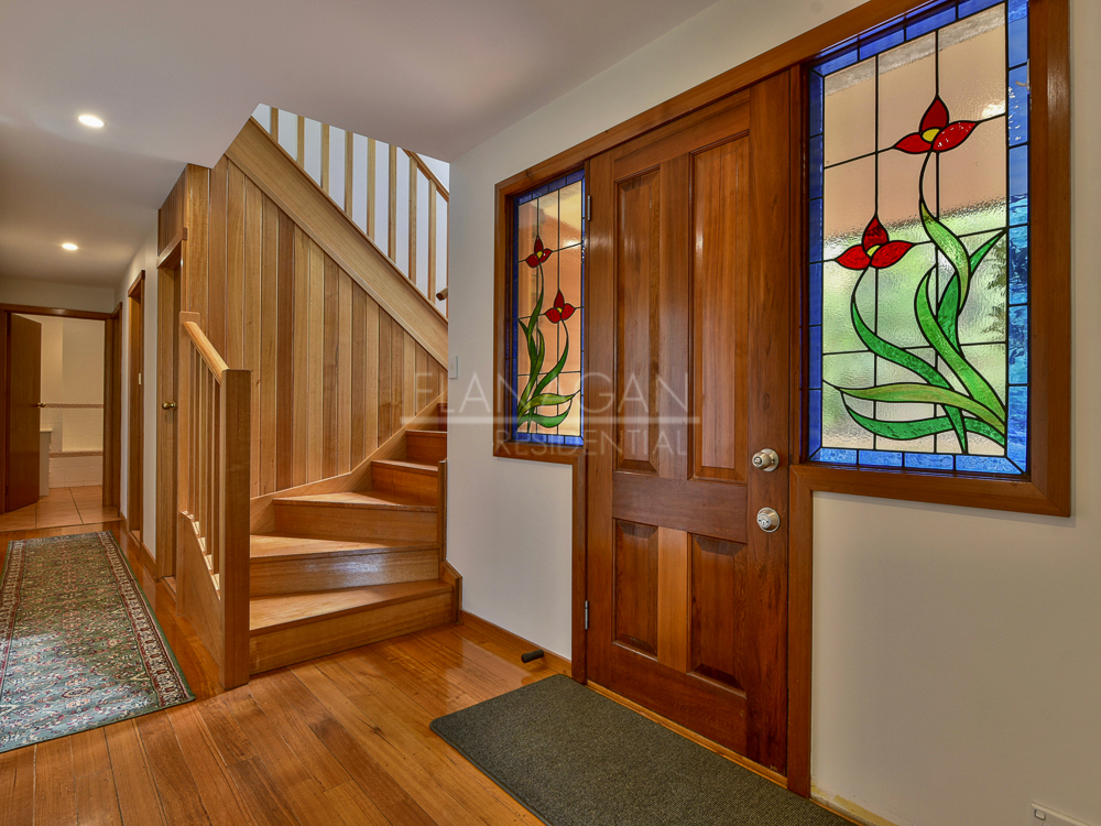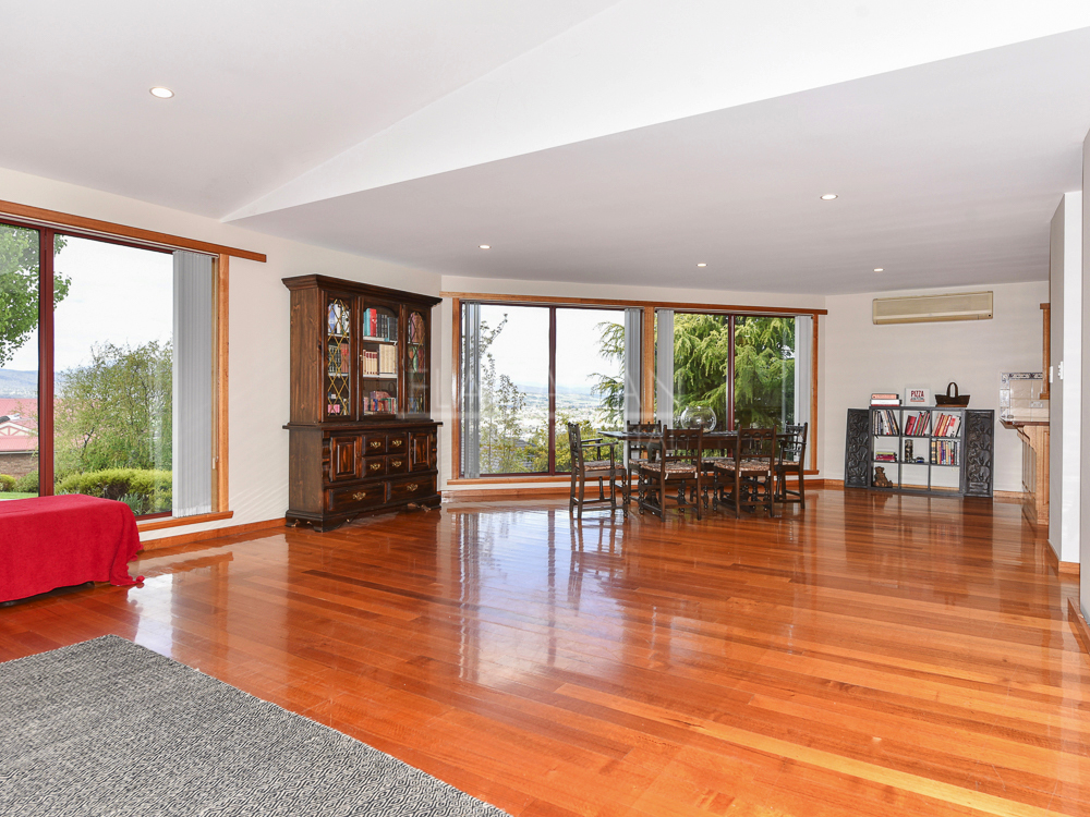 On the entry level there is the main spacious living area with high ceiling which flows to the kitchen / dining area.  There are large windows in this space to allow maximum light into the property while allowing you take in those views along with beautiful polished floorboards.  There are also 2 bedrooms, 1 with built-in robes, a bathroom, laundry and double garage on this level.
