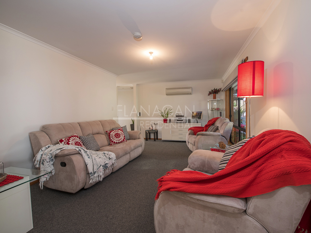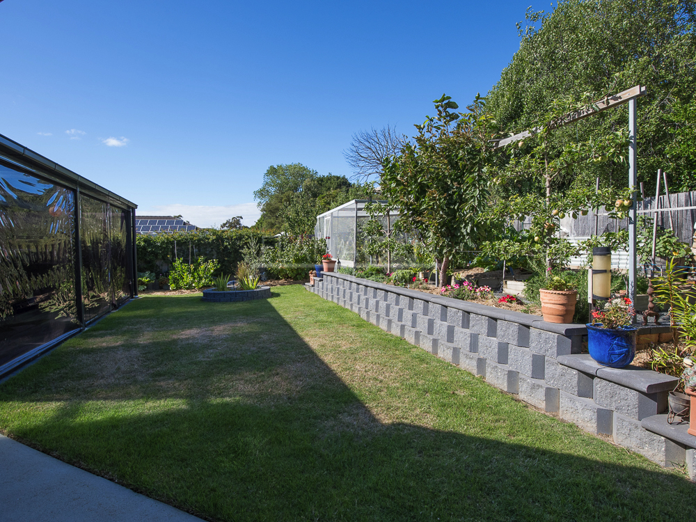 The flat block is fully landscaped with a variety of veggie beds, fruit trees, plants and extra parking for a boat, caravan and cars.