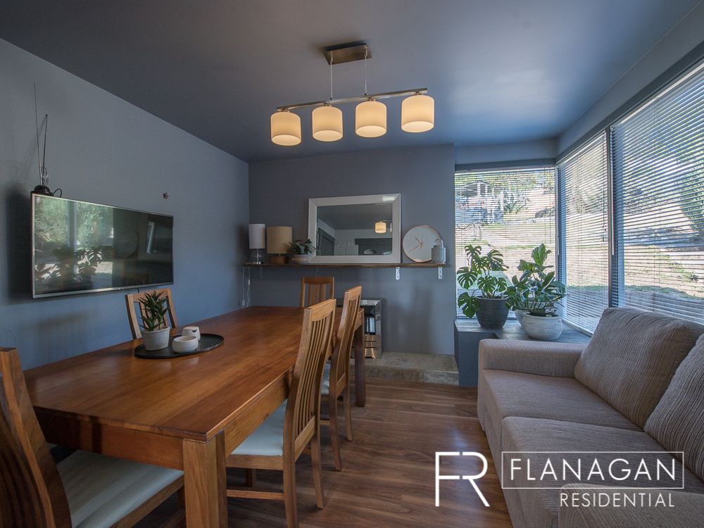 The unique floorplan allows for plenty of options, with three bedrooms and both separate dining and lounge rooms.  The entry hall leads downstairs to the second bedroom, perfect for a private retreat, while the master and third bedroom are on the upstairs level.