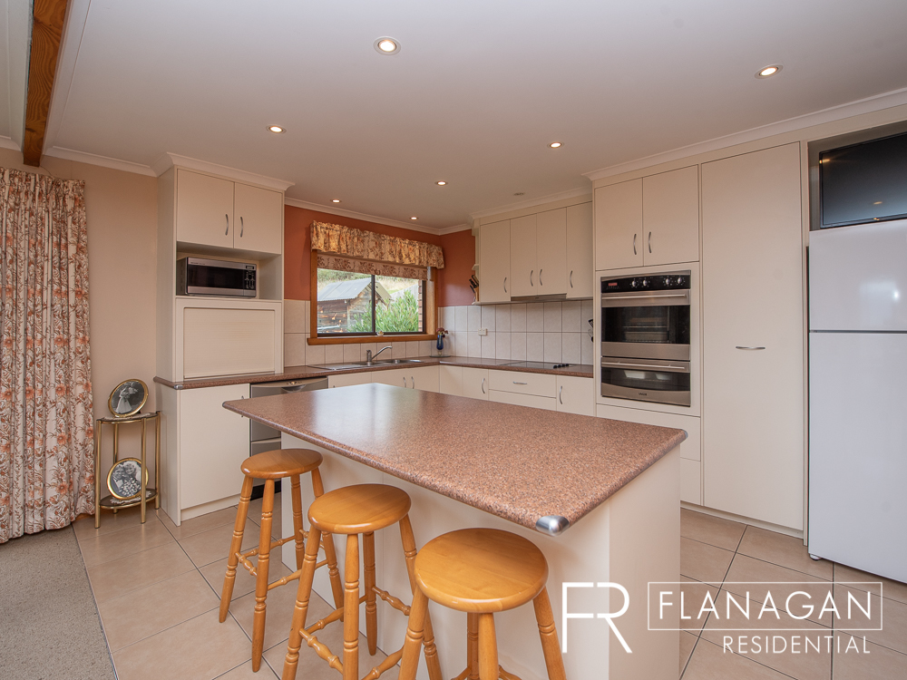 Originally built in 1979 buyers will be impressed by how well maintained this home is, along with the excellent potential to update some original features if desired.  The floorplan is cleverly designed with the main bathroom (with bath and shower) and all four bedrooms, including the master with ensuite, leading off a central hallway.  The lovely open plan living area takes up almost half the house and is efficiently warmed by a quality wood heater. The kitchen has been updated and is the heart of the home, with a generous breakfast bar, good quality appliances and plenty of storage space.  A separate toilet and good size laundry complete the interior picture.