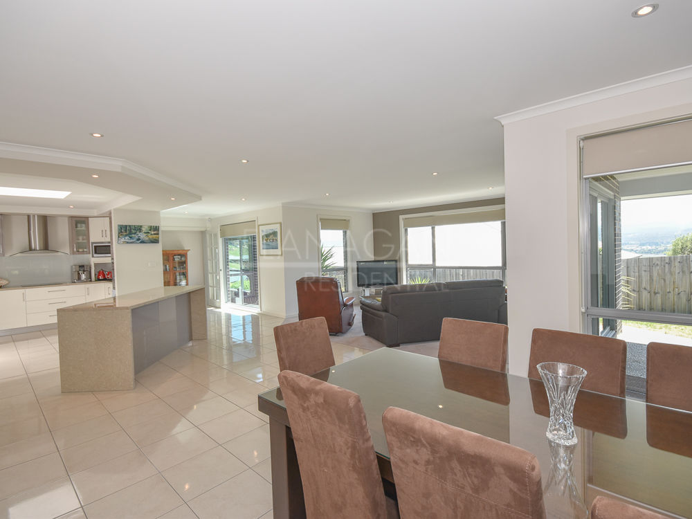 On one level there are 4 bedrooms (master with walk-in robe and 3 with built-in robes), 2 stylish bathrooms, formal lounge, open plan dining / family room which flows to the chef style kitchen with access to the Alfresco outdoor entertaining area, a laundry and double garage.